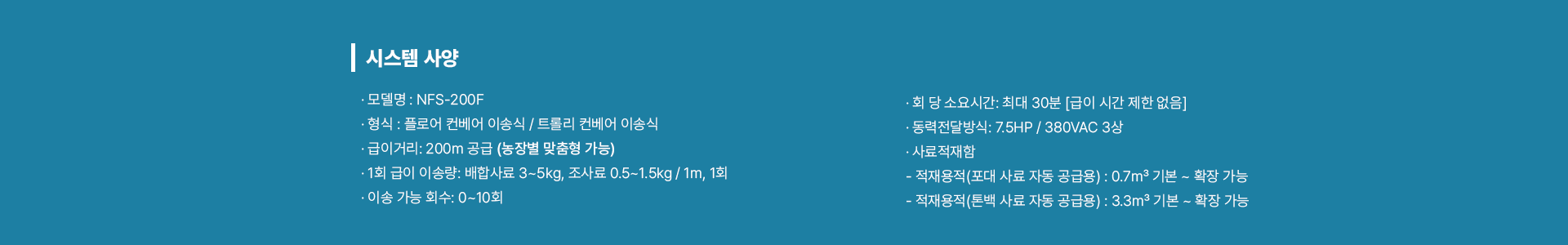무인 자동 급이시스템 - 사양